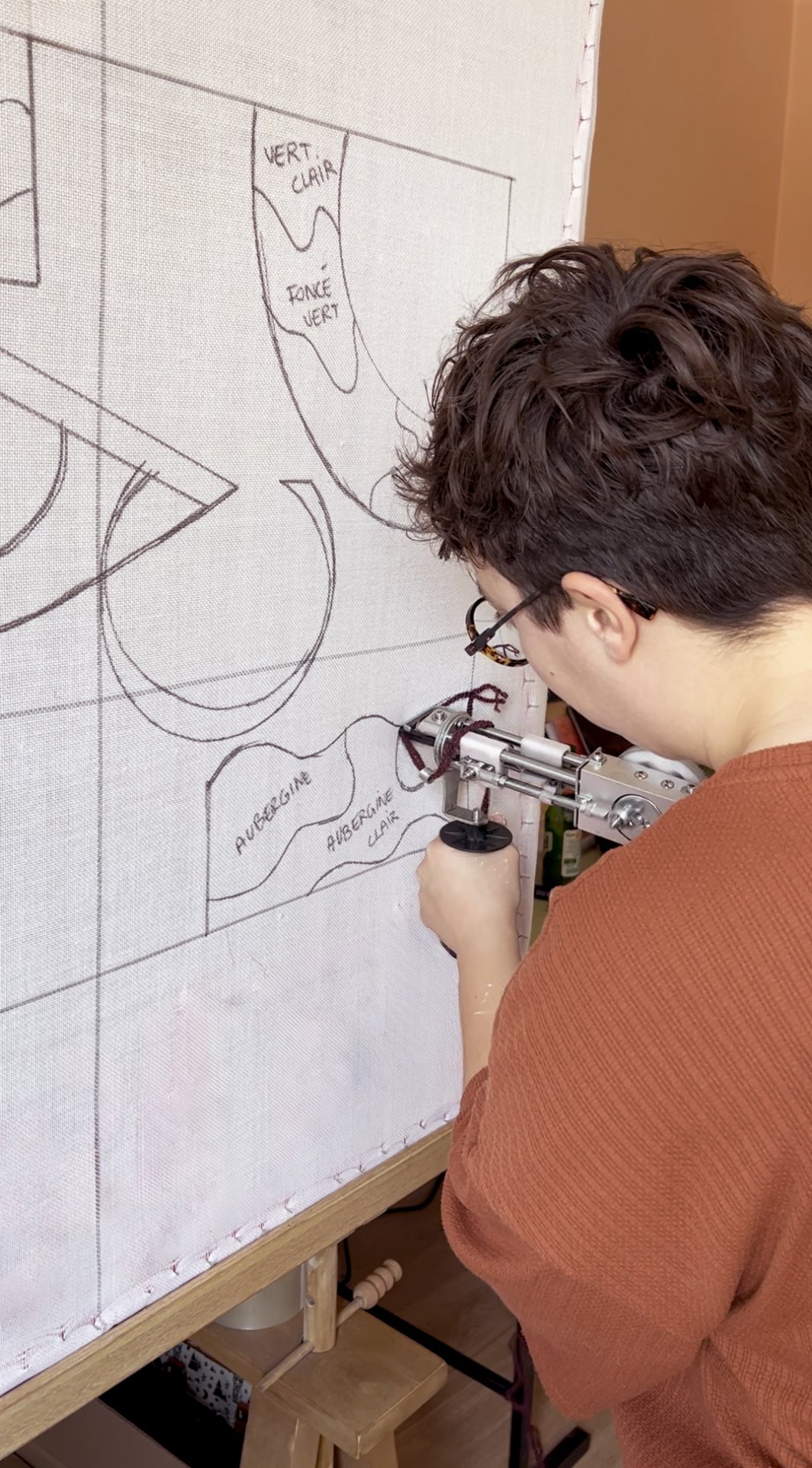 Je m’occupe ensuite des finitions à l’atelier — tonte, découpe et pose de la toile arrière — pour un rendu impeccable ✂️